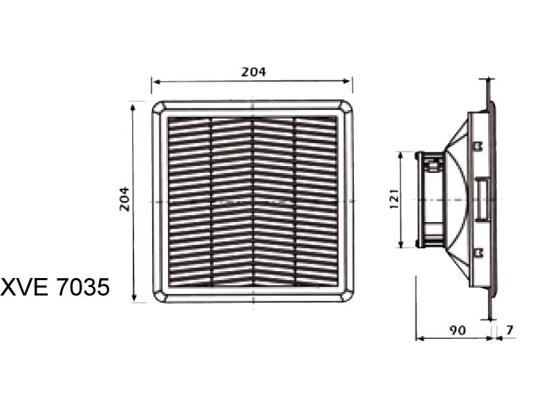 Modello ad incasso totale, colore standard RAL 7035, ventola a cuscinetto, Filtro IP54, disegno del filtro ad alette inclinate